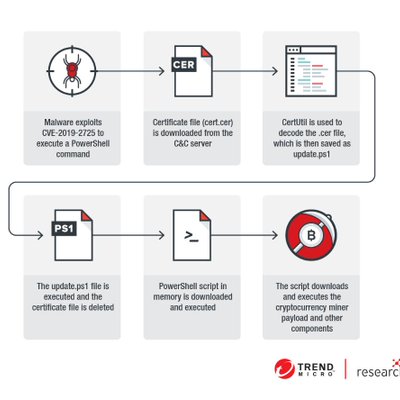 -based cryptominer that used certificate files to hide its activity. Its infection chain, detailed: