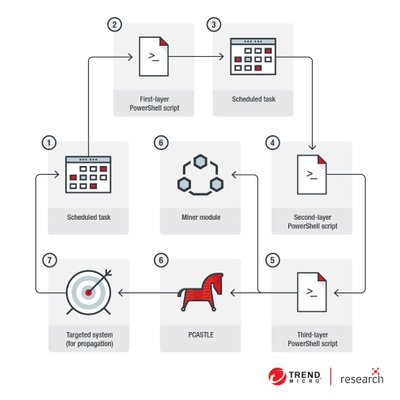 Our researchers came across a malware campaign that uses multiple #fileless techniques to deliver a #Monero miner. Its infection chain, detailed: bit.ly/2Wjsndw