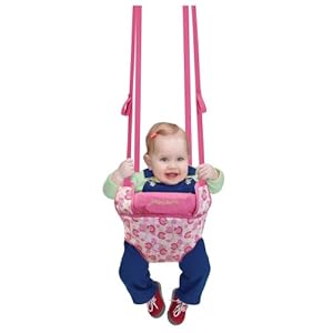 Product Description : Color: Pink CirclesFrom the ManufacturerThe Jenny Jump Up by Evenflo provides baby with plenty of learn and playtime fun with a bright, colorful pink pattern designed especially for baby girls. The Jenny Jump Up helps baby achieve 3 important developmental milestones gross motor skills, cause and effect and balance and coordination. This portable infant exerciser transports easily room to room. Provides secure fit to interior doorways at least 3", but no more than 6" thick with firmly affixed door trim at least ? inch wide. Adjustable straps allow you to size and adjust the Jenny Jump Up to accommodate a babys changing height and weight, as well as a particular doorways dimensions. Clip on your childs favorite toy to the toy loops to customize learn and play. The removable, machine washable seat pad easily disassembles for quick clean up in the washing machine. Product Description : Evenflo Jenny Jump Up? Classic Baby Exerciser Pink CirclesFeatures: -Portable infant exerciser provides entertainment and exercise for baby without taking up floor space-Sturdy door frame clamp provides secure fit to interior doorways at least 3" but no more than 6" thick, with firmly affixed door trim at least 1/2" wide-Removable, washable seat pad-Adjustable straps let you accommodate a baby