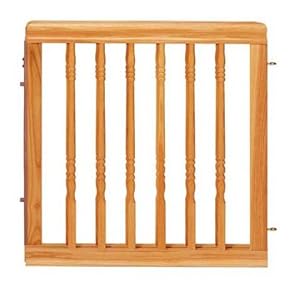 Product Description : Classic design complements any home decor.Furniture-quality wood design in Harvest Oak tone.One-hand latch release offers added convenience.Hardware mounted for added security.Swing mount swings both ways or use One-Direction Swing setting for top of stairs.Adjusts to fit openings 31" to 52" wide, 32" high.Classic design complements any home decor - great for top-of-stairs.