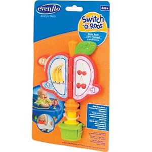 Product Description : Color: Apple BookFrom the ManufacturerEvenflo switch a roos are designed to help children achieve developmental milestones and are compatible across all evenflo exersaucer models. Product Description : Evenflo Apple Book Switch-A-Roo Great fun by itself or with an Evenflo activity platform, your child will take a big bite out of playtime with the Evenflo Apple Book Switch-A-Roo. This colorful, one page flip toy features fruit to help with counting. This is a great sensory development toy for your bouncing, bopping baby.