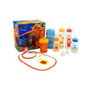 Product Description : The Zoo Friends Gift Set is a fun, bright and exciting set of bottles featuring favorite characters. The friendly characters teach kids about different colors and animals. ?Perfect for gift giving at an affordable price ?Assorted colors and graphics are fun for mom and baby ?Graphics include Monkey, Lion, Giraffe and Hippo ?Includes assorted feeding accessories to meet all feeding needs ?Includes bottles, bib, food storage container, sippy cup and nipples ?The bright, fun gift set that makes feeding fun, imaginative and exciting ?Includes instructions (in English, Spanish)