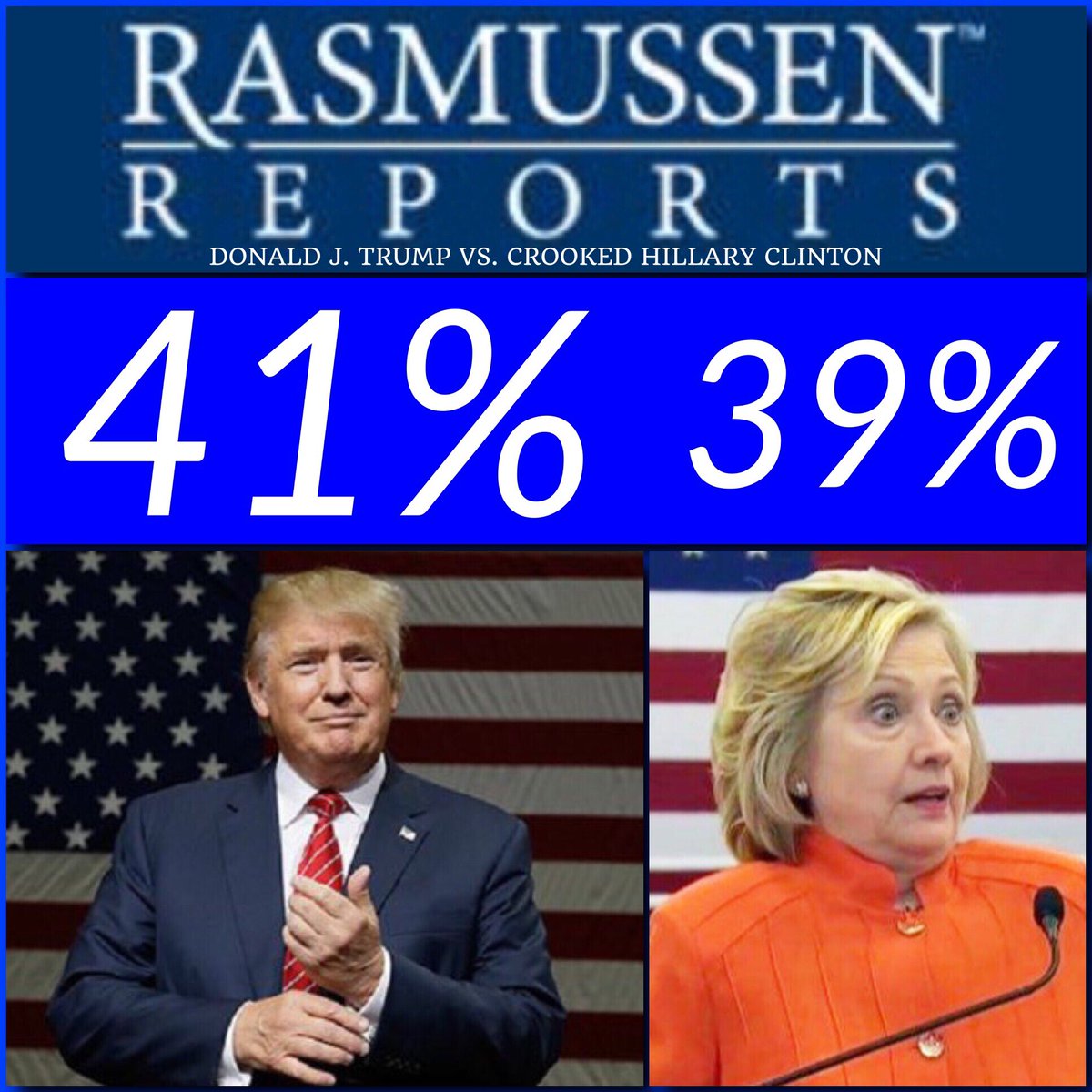 I will defeat Crooked Hillary Clinton on 11/8/2016.